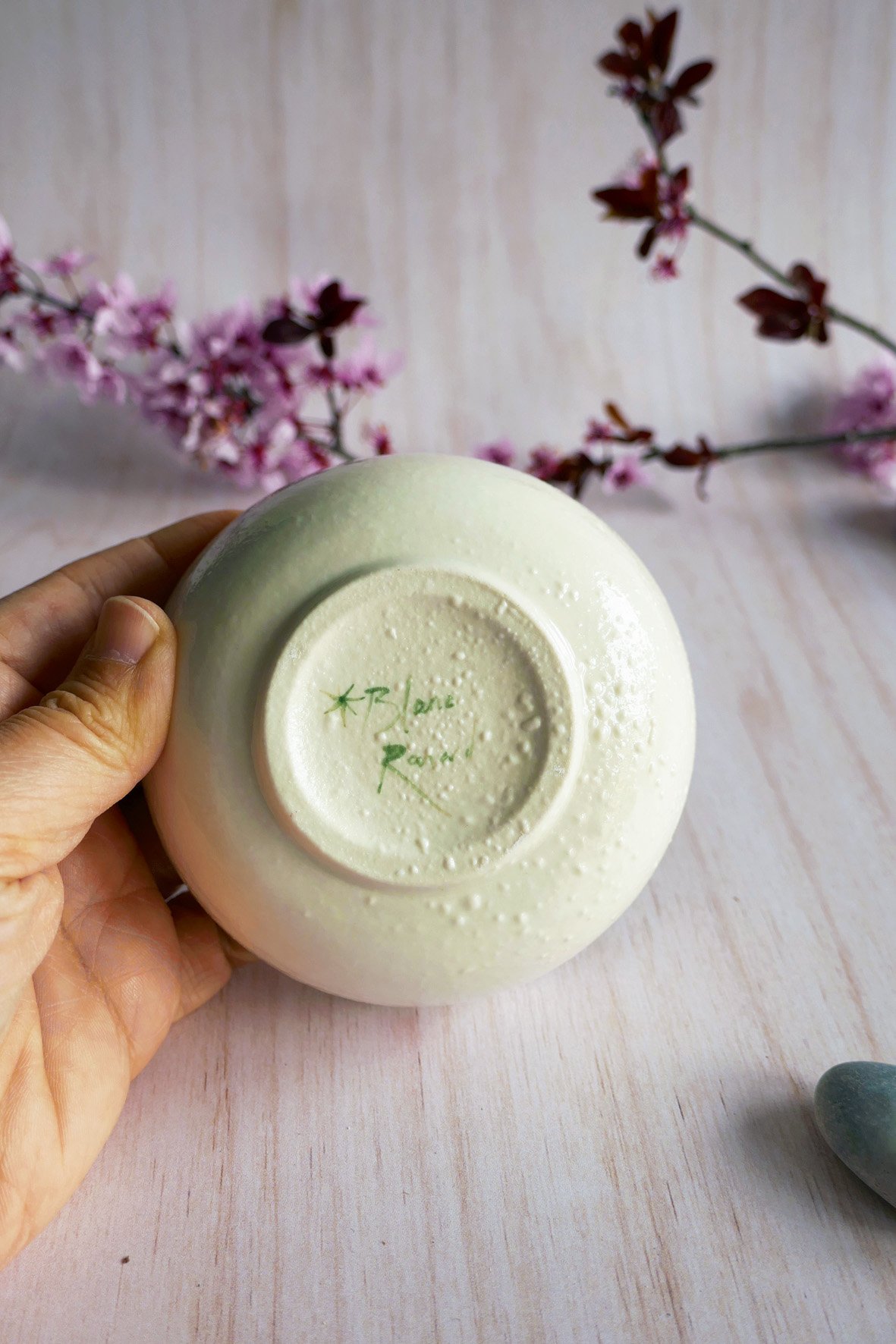 Bol en porcelaine façonnée via la technique du coulage artisanal. La petite créature qui l’habite est modelée à la main en porcelaine et fixée à l’intérieur du bol avant d’être peinte à l’aide d’engobes colorés. La pièce est une première fois à 950° puis émaillée et cuite à 1250°, sa température finale de cuisson qui lui donne son aspect définitif et toute sa solidité ! Chaque pièce est unique avec son propre animal et motif différent.