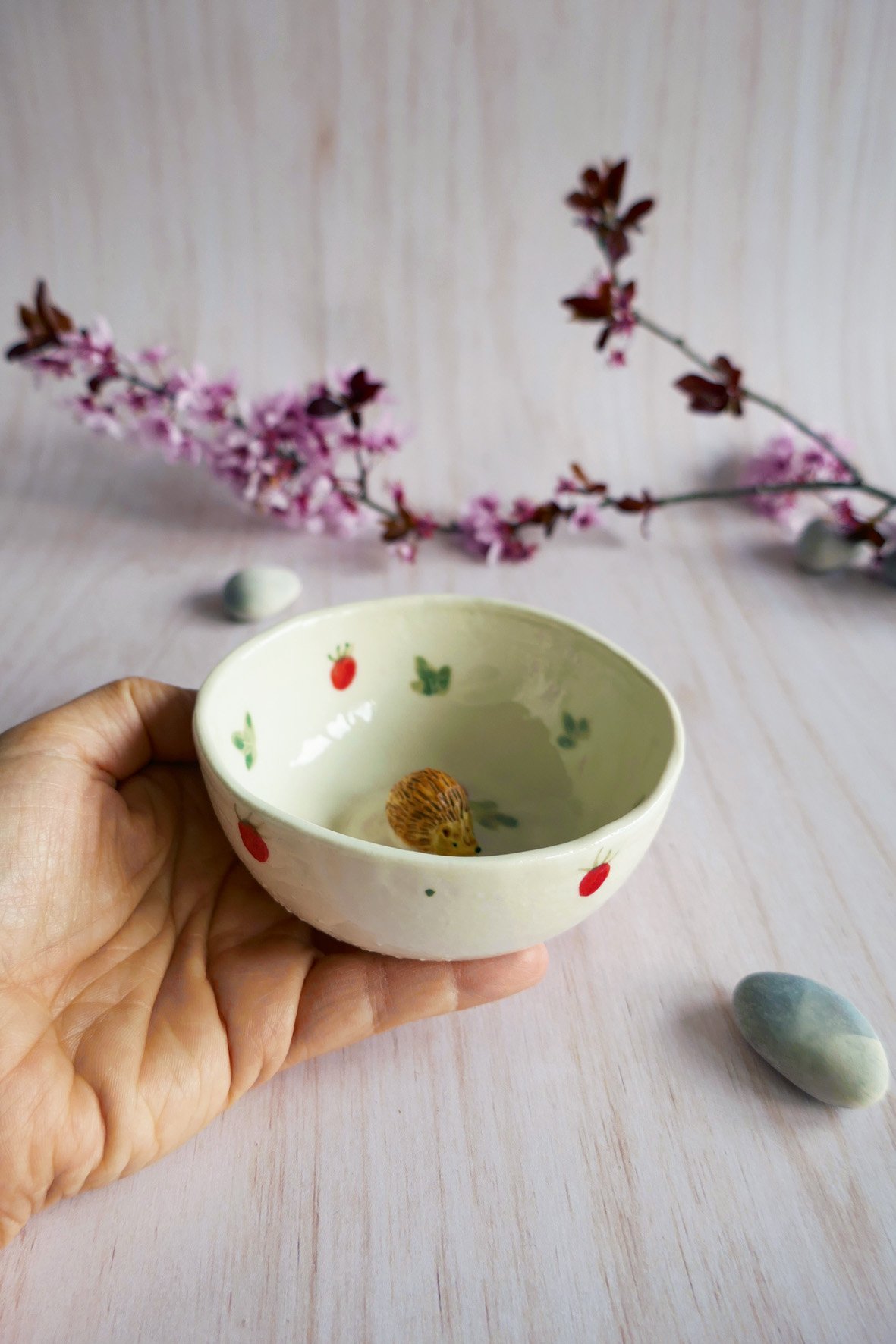 {Vide-Atelier} Bol décoratif en porcelaine « Hérisson aux fraises »