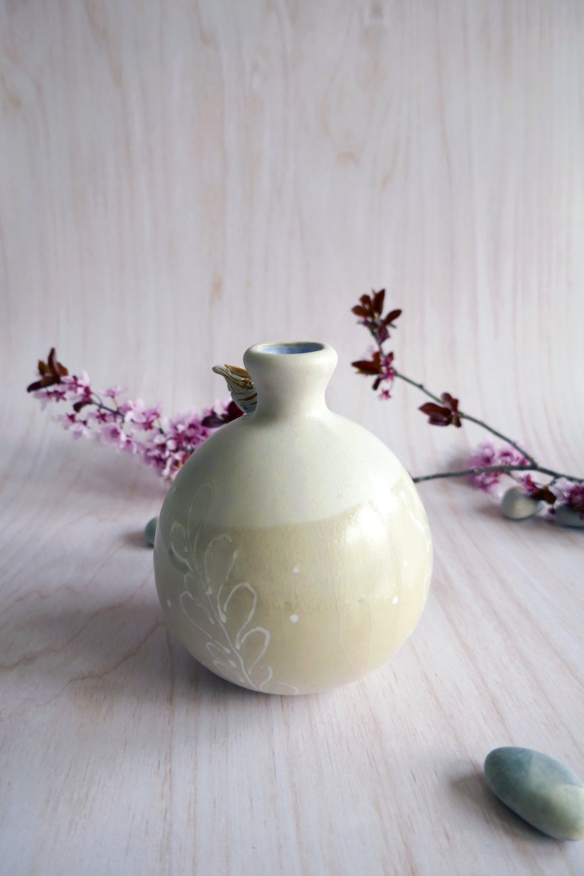 Vase en grès façonnée via la technique du coulage artisanal. La petite créature qui l’habite est modelée à la main en porcelaine et fixée à l’intérieur du bol avant d’être peinte à l’aide d’engobes colorés. La pièce est une première fois à 950° puis émaillée et cuite à 1250°, sa température finale de cuisson qui lui donne son aspect définitif et toute sa solidité ! Chaque pièce est unique avec son propre animal et motif différent.