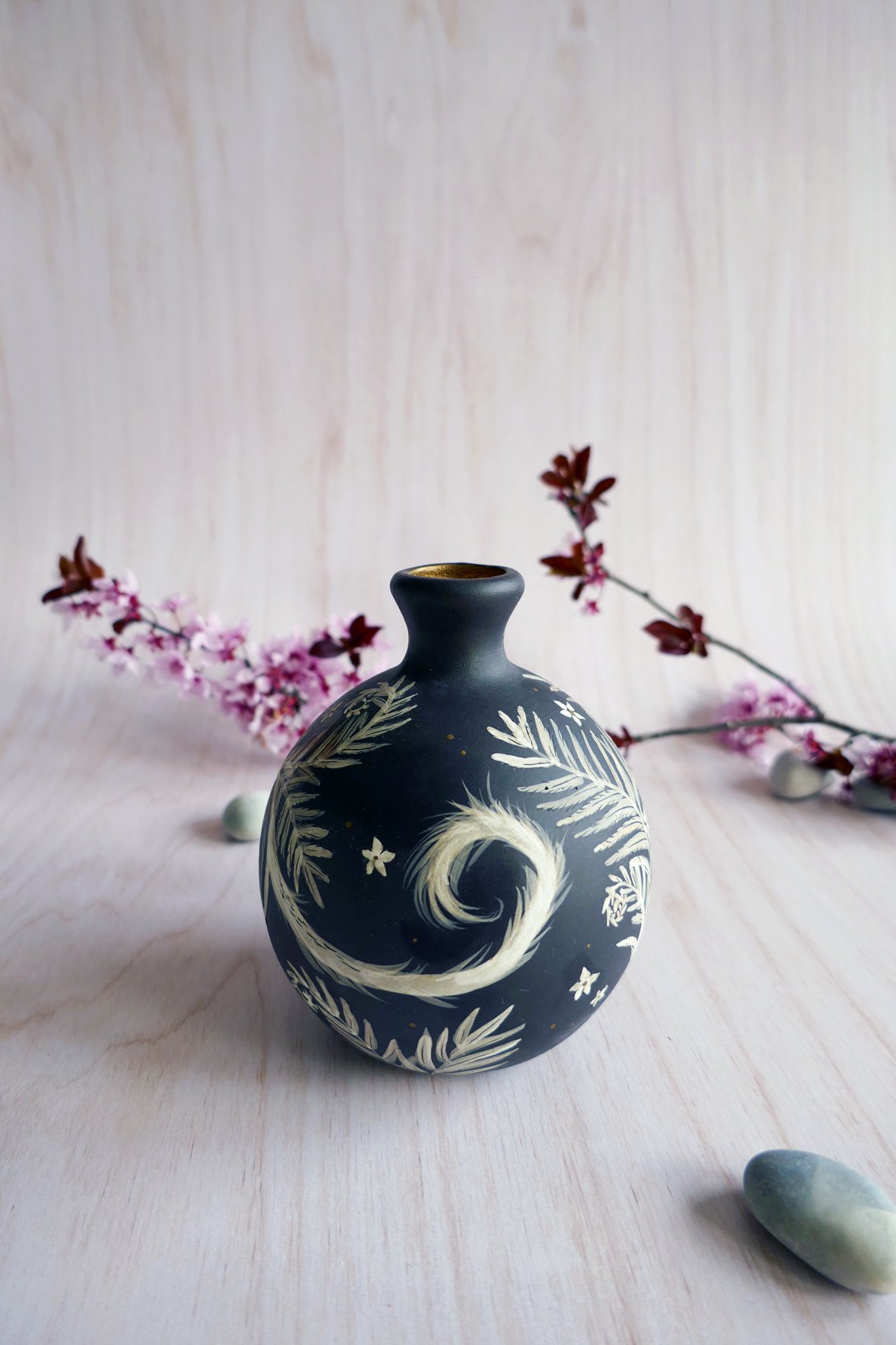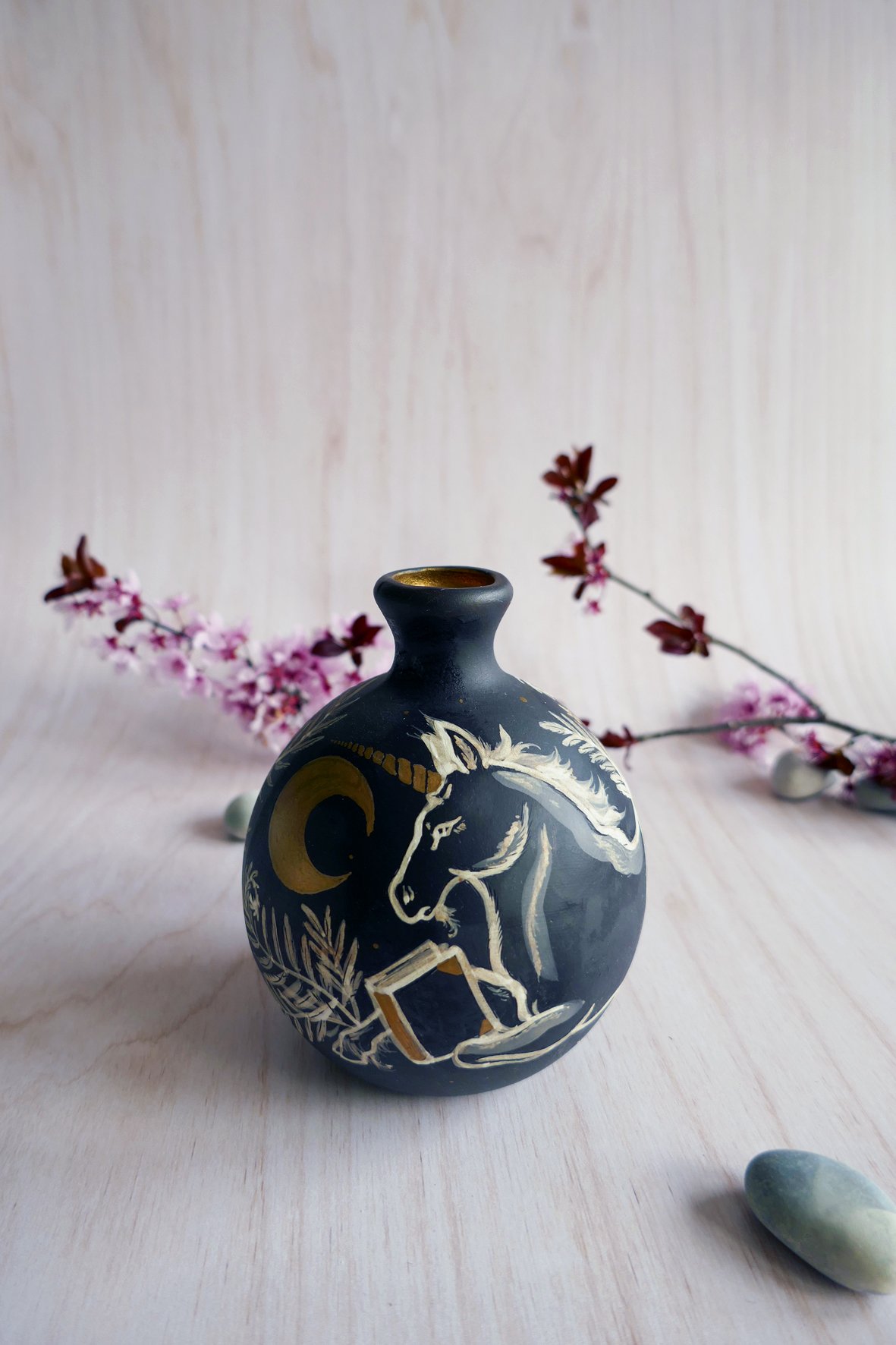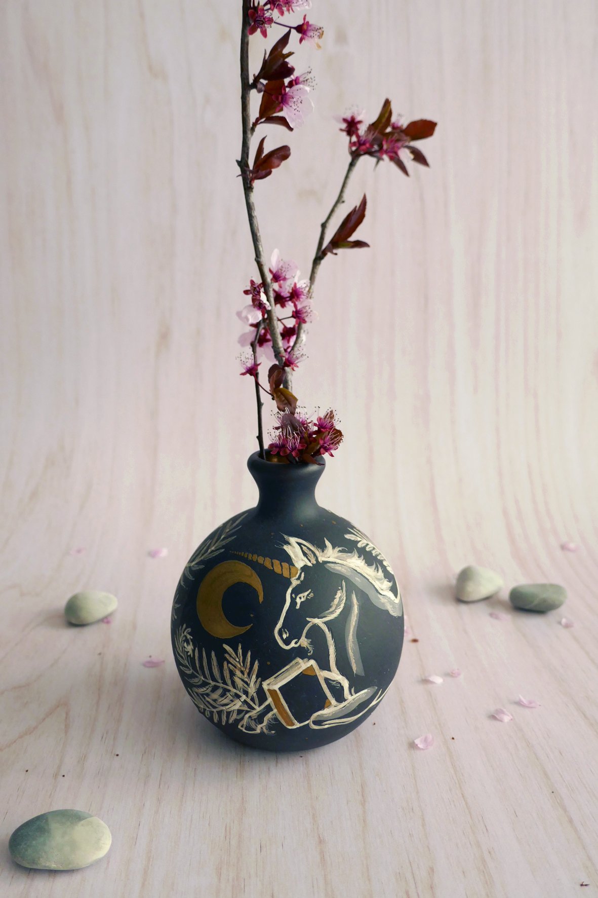 {Vide-Atelier} Vase en porcelaine noire « Lecture de Licorne »