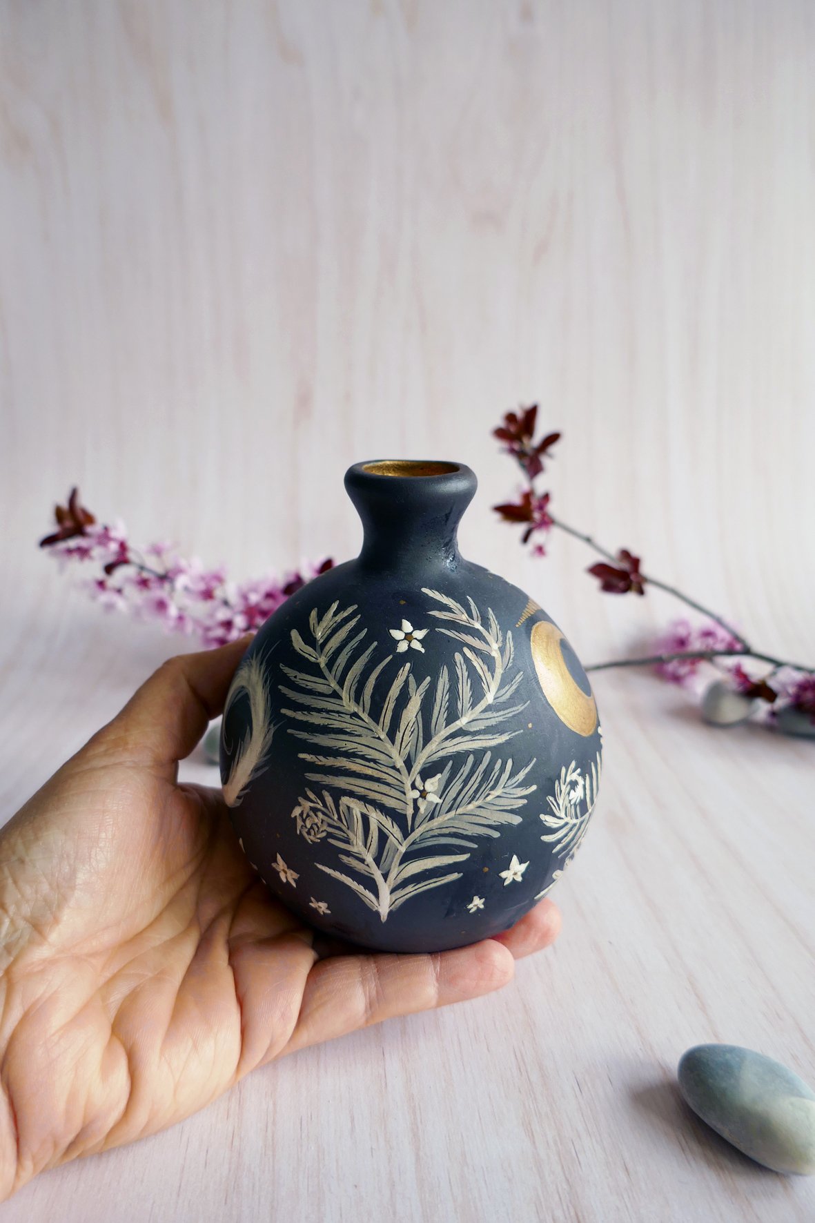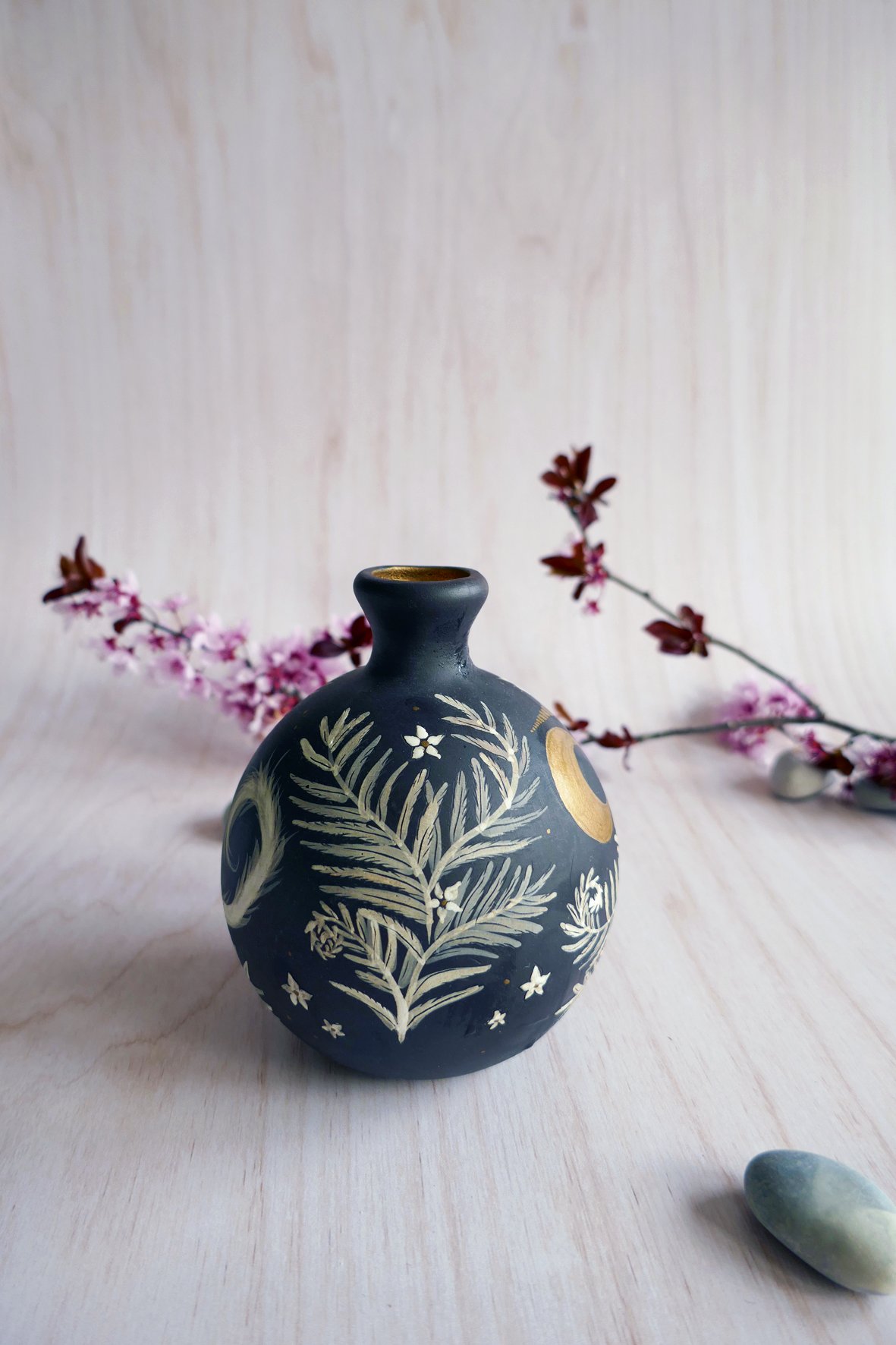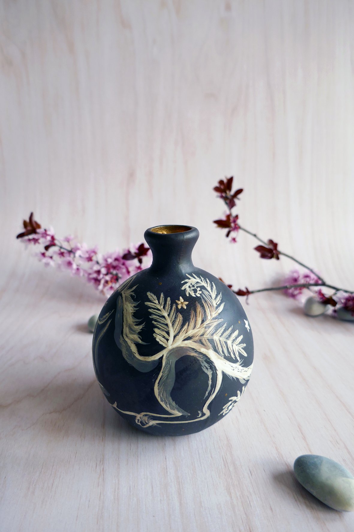 {Vide-Atelier} Vase en porcelaine noire « Lecture de Licorne »